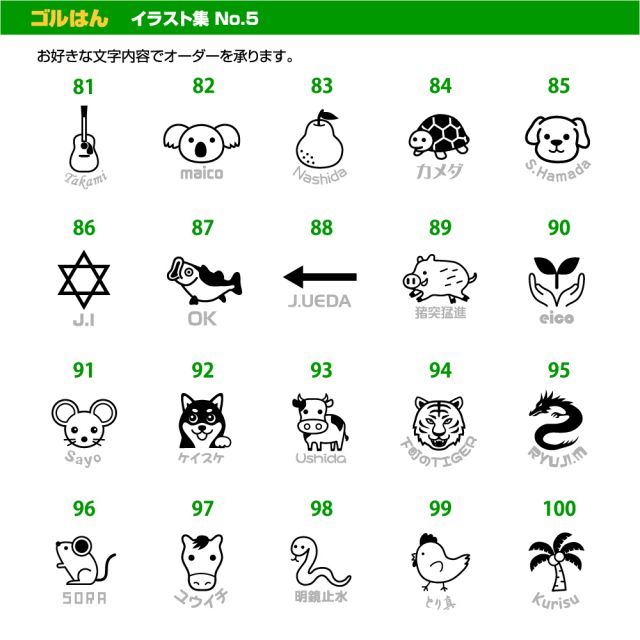 ゴルフボール用 スタンプ ゴルはん サンプルのイラストから選ぶ 14mm円 golhan